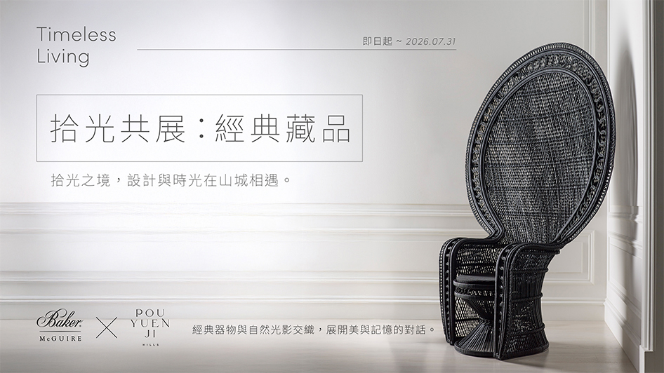 白宮御用的精品家具Baker-McGuire貝克傢俱以精湛工藝與設計語彙,展現家具作為文化象徵的高度。此次走入苗栗三義山林間,攜手以「茶生活」為核心的 POUYUENJI HILLS 寶元紀之丘,共同推出 Timeless Living《拾光共展:經典藏品》策展合作,讓承載歷史與工藝的家具,與茶文化所蘊含的沉靜哲思相互呼應,開啟設計與自然的跨界共鳴。