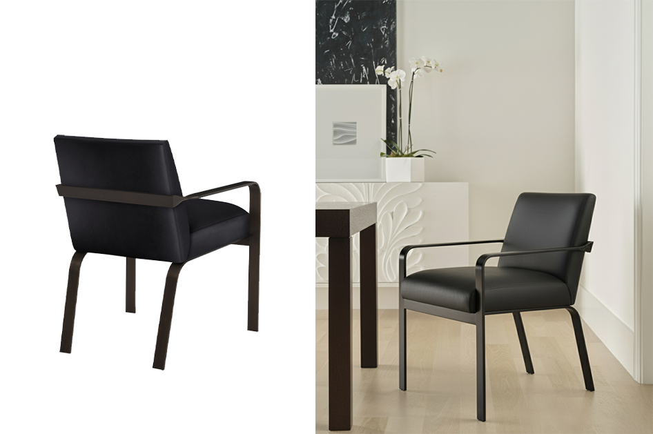 玄關端景: Ezra Arm Chair 的沉穩金屬線條,可作為迎賓的視覺重心。