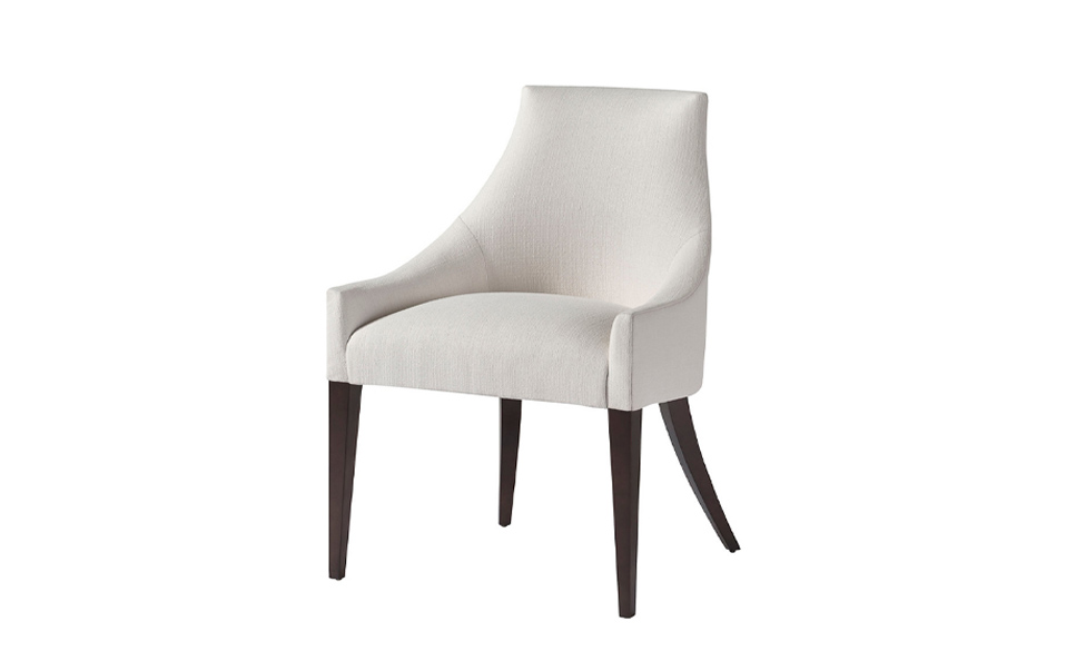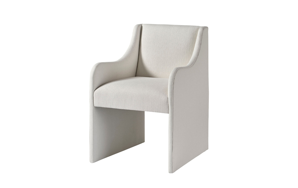 以大膽的造型與蜿蜒的扶手,勾勒出獨特而鮮明的存在感。精緻包覆的全布椅身,搭配懸浮式座面與抬升的設計語彙,為餐椅注入輕盈而摩登的風格詮釋。