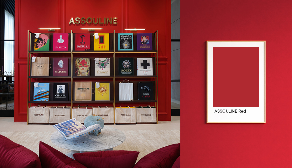 同樣引人注目的 ASSOULINE Red 則來自文化與閱讀的維度。巴黎文化精品 ASSOULINE 精裝書籍所形塑的經典書牆,是一種高度可辨識的文化符號。這種紅並非為了張揚,而是在宣示:這裡是一個關於旅程、建築、時尚與藝術的閱讀場域。當 ASSOULINE 精裝書與 Baker-McGuire貝克傢俱 共構於同一空間,紅色不再只是視覺點綴,而是將居所轉化為一處承載文化重量的生活場景。