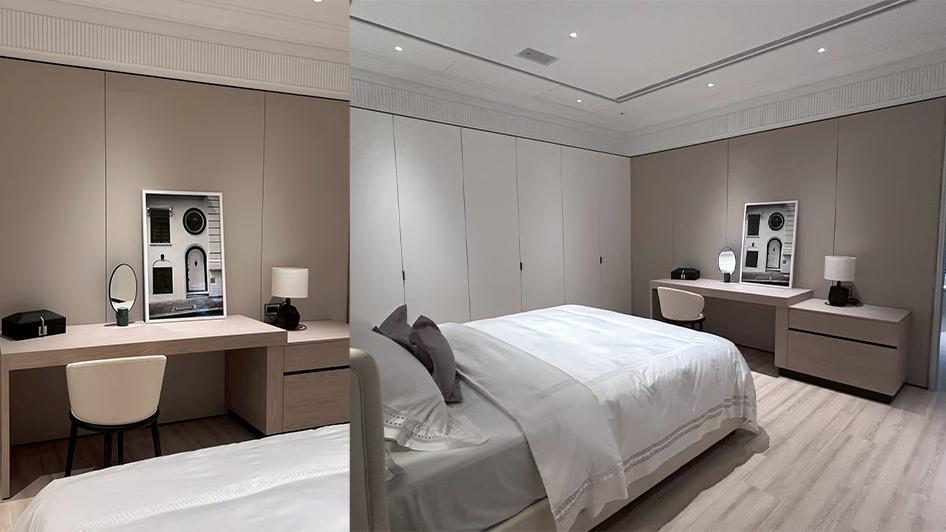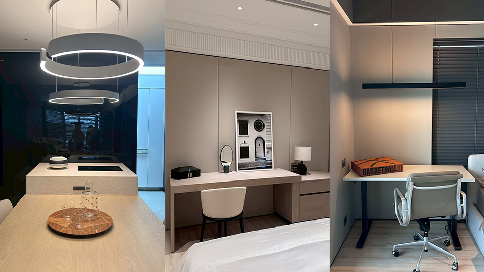 這間是由唐林設計的副品牌這樣設計負責,整體空間設定為軟裝配置提供了明確的尺度與使用情境,也讓家具與家飾得以在既有結構中進行配置與彈性調整。