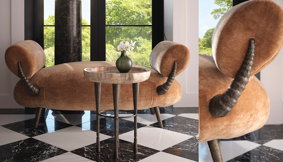 頂級精品家具品牌 Baker-McGuire 貝克傢俱 與國際奢華度假酒店設計大師 Bill Bensley 合作推出 The Bill Bensley Collection for McGuire,此系列以柬埔寨荳蔻山脈雨林為靈感,結合數百萬年形成的木化石與水晶白瑪瑙,將野生動物的靈動線條幻化具備雕塑感的藝術家具,構築出「精緻奇境」的精品美學,為飯店豪宅公設、藝廊接待區與個性化居家空間提供了極具故事張力的陳列選擇。
