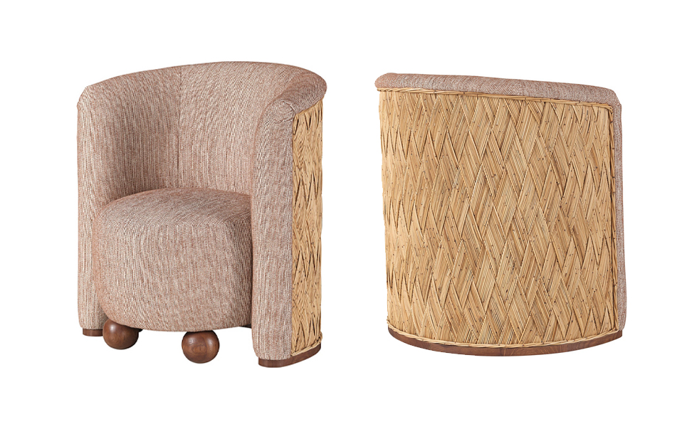 此外,為致敬 McGuire 的品牌傳承,工匠們精心以蒸汽彎曲手工編織藤條。這些材料被編織進大膽且兼具功能性的設計中,創造出既是家具、更是藝術品的極致之作。