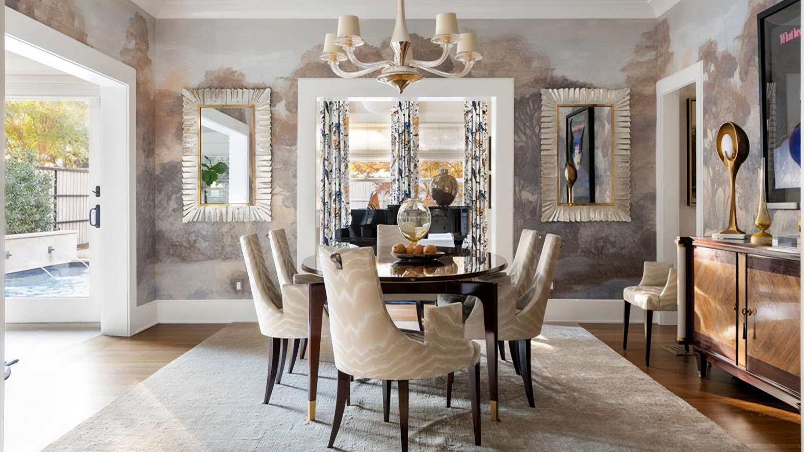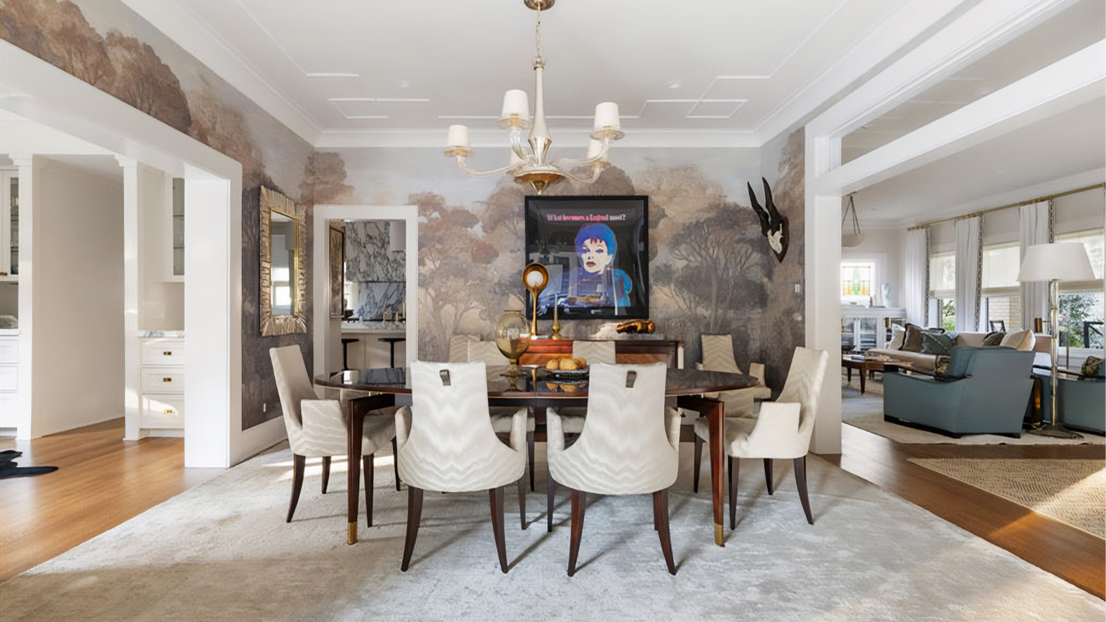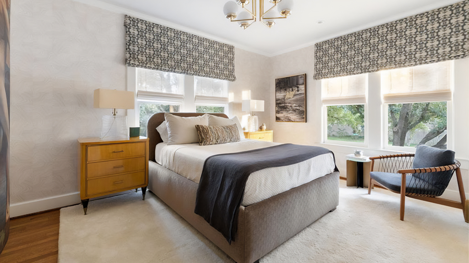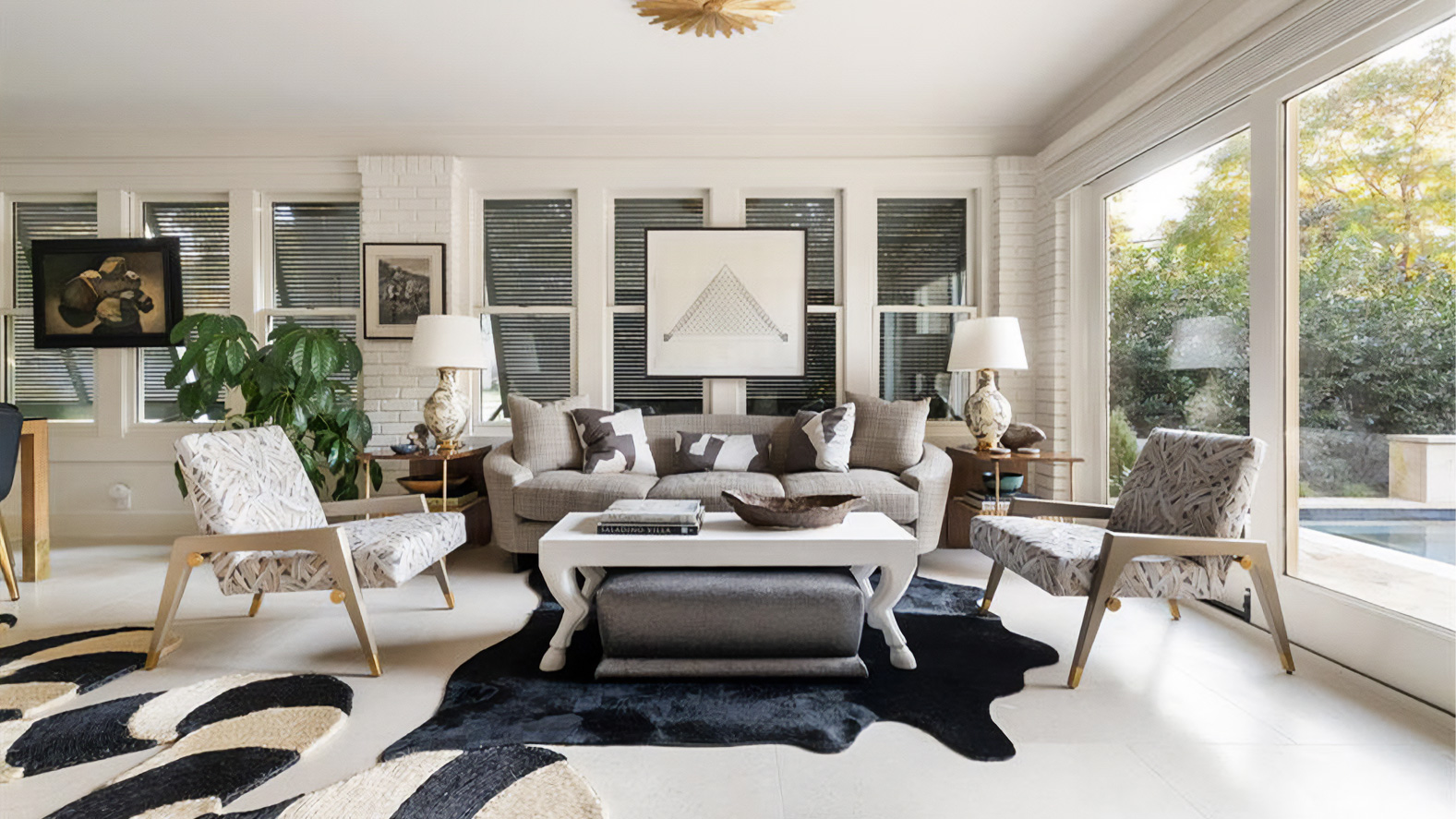 為了呼應德州充足的陽光與窗外的自然景觀,空間採用了暖色中性調。」Baker-McGuire 貝克傢俱 精選單品以精準的比例與低彩度的織品,在光影流動間,建立起一種安靜而穩定的秩序感,並與牆面大膽的畫作與珍貴的古董得以和諧對話。